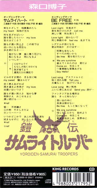 名古屋TV・テレビ朝日系アニメ 「鎧伝サムライトルーパー」 エンディングテーマ |
