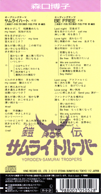 名古屋TV・テレビ朝日系アニメ 「鎧伝サムライトルーパー」 エンディングテーマ |
